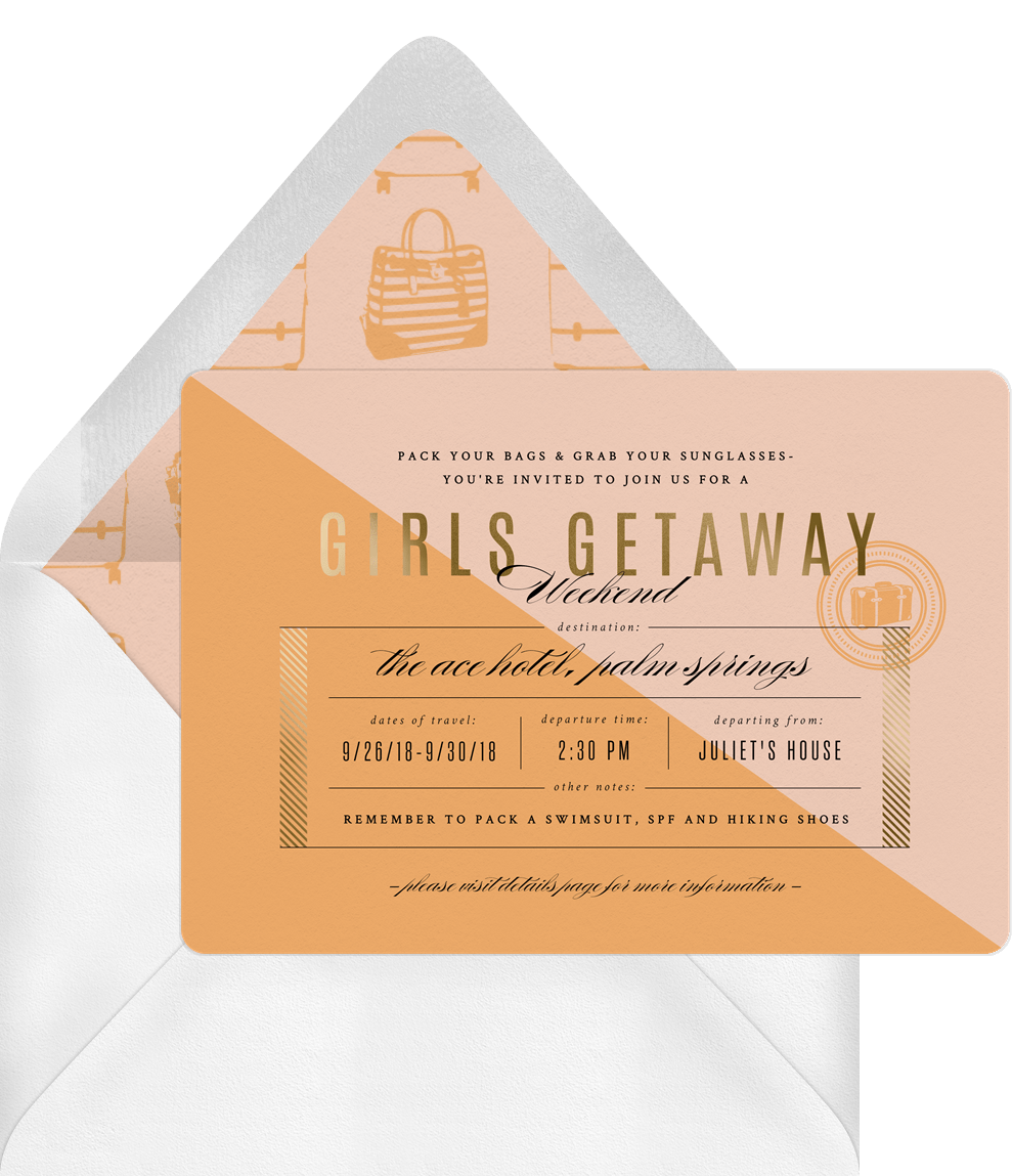 invitations girls getaway orange entertaining Designs