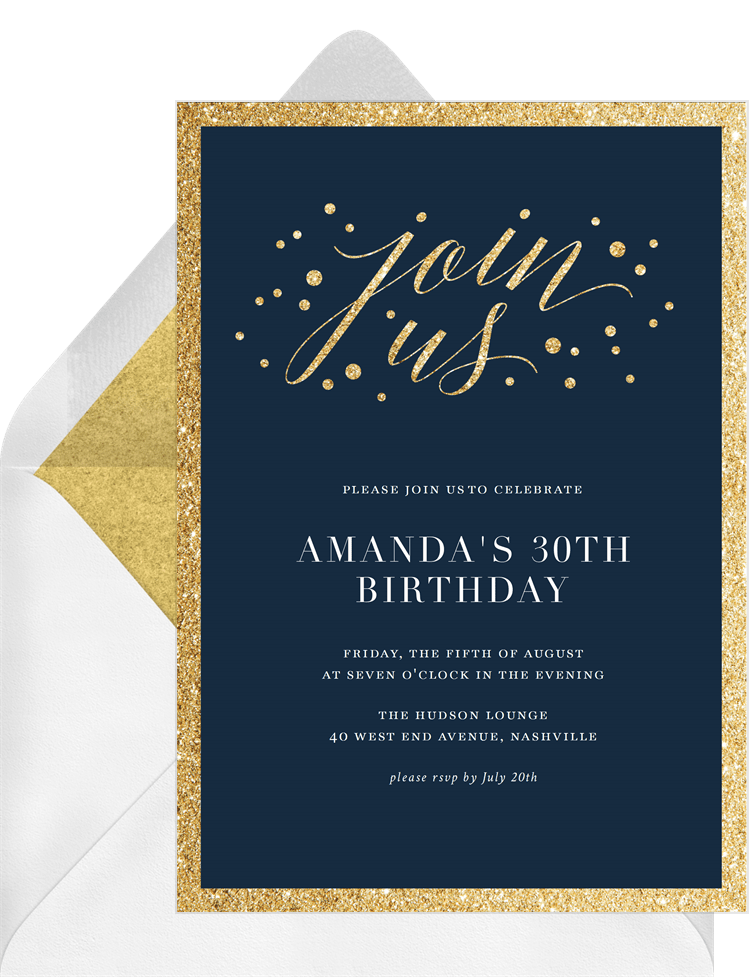 invitations glitter join us gold adult birthday Designs