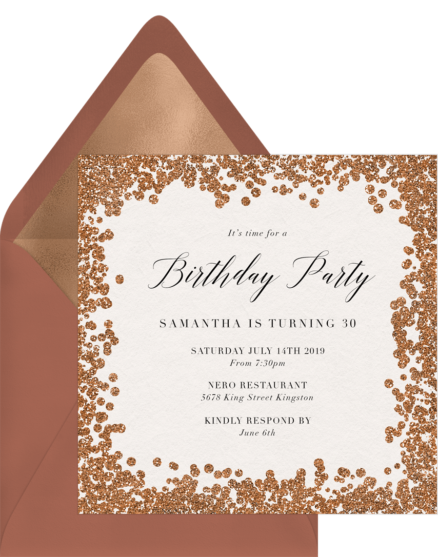 invitations glitter paint orange adult birthday Designs