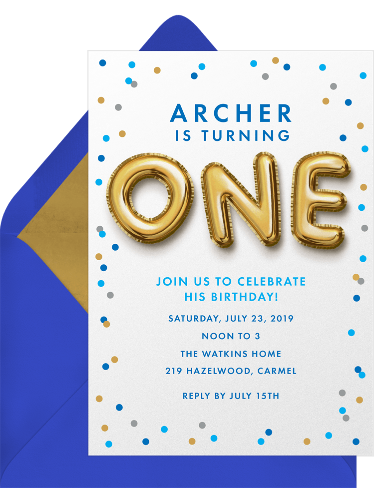 invitations gold balloons one Designs