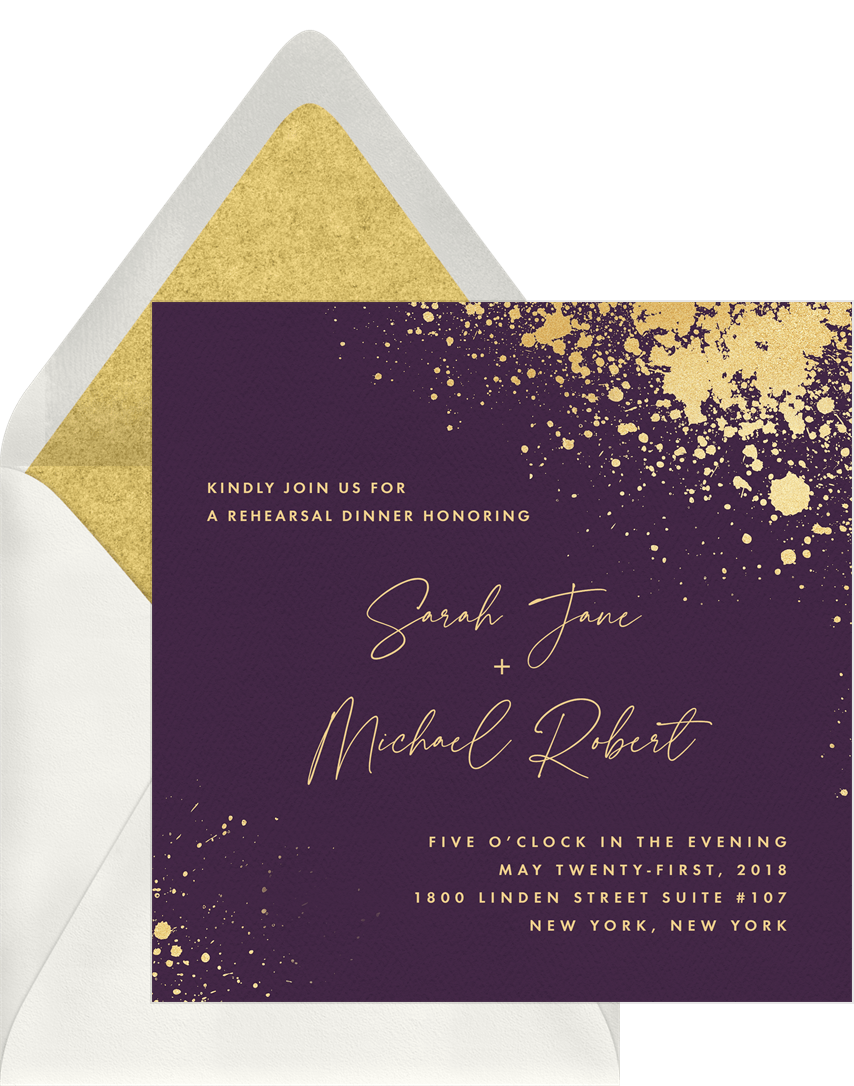 invitations gold dusting purple rehearsal dinner Designs