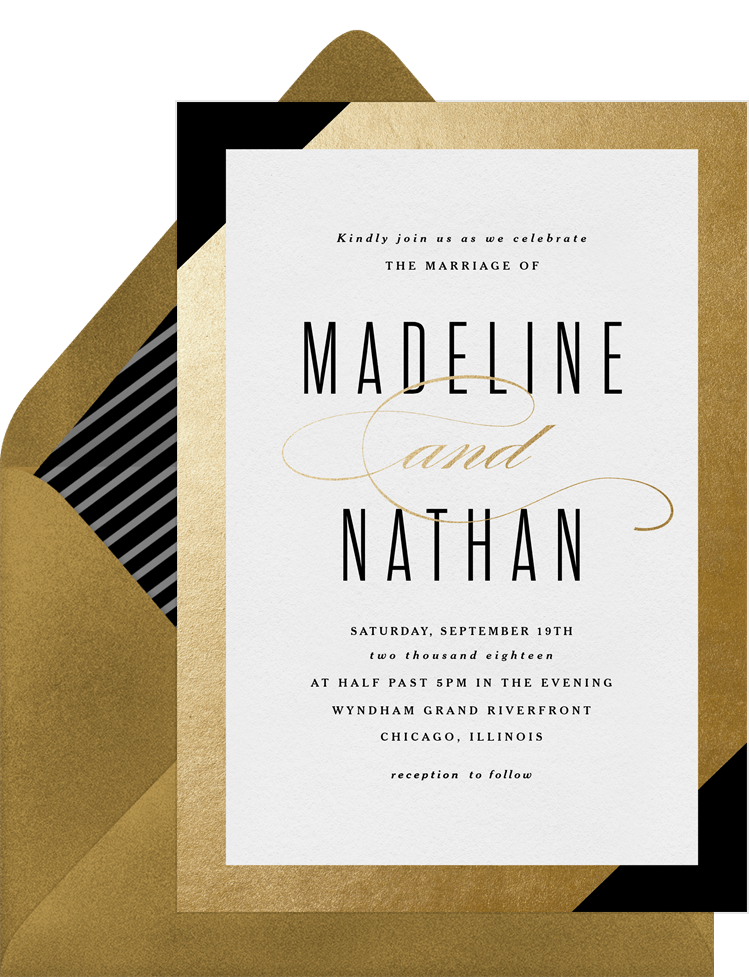 invitations gold foil frame black wedding Designs