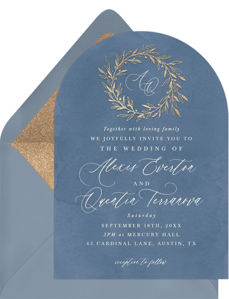 invitations gold wreath blue wedding Designs