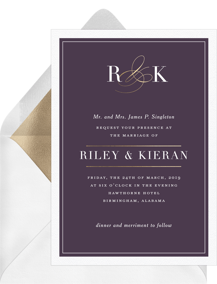invitations golden ampersand purple wedding Designs
