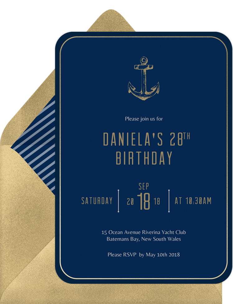 invitations golden anchor blue adult birthday Designs