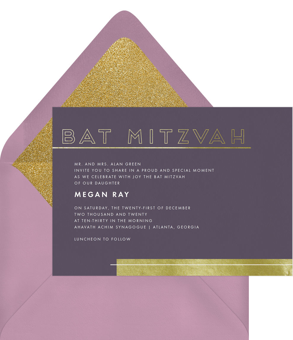 Golden Bat Mitzvah Invitation