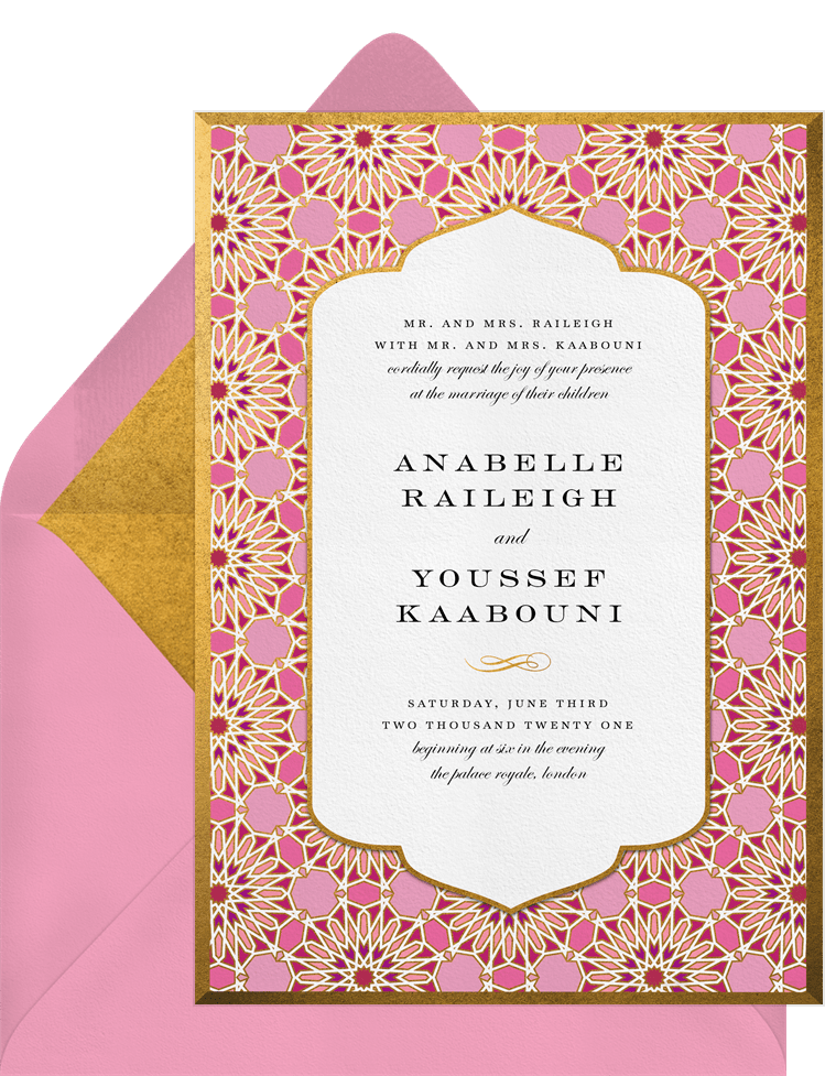 invitations golden mosaic pink wedding Designs