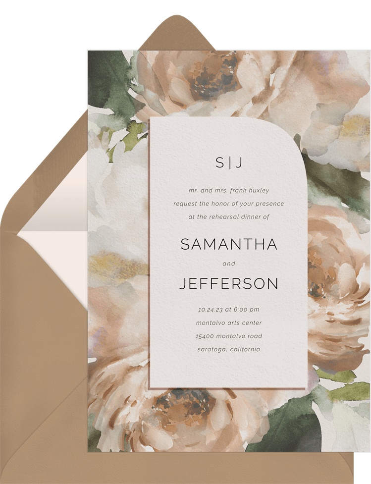 invitations gorgeous blooms creme rehearsal dinner Designs
