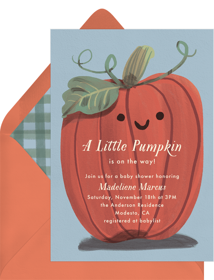 invitations happy pumpkin blue baby shower Designs