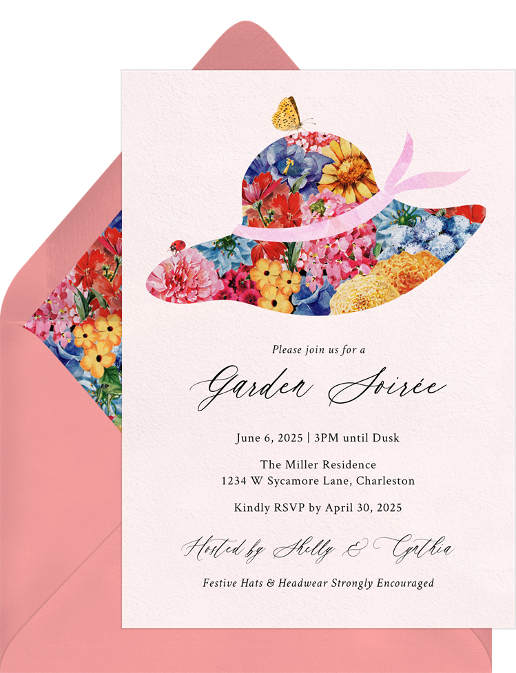 invitations hats off! pink garden party Designs