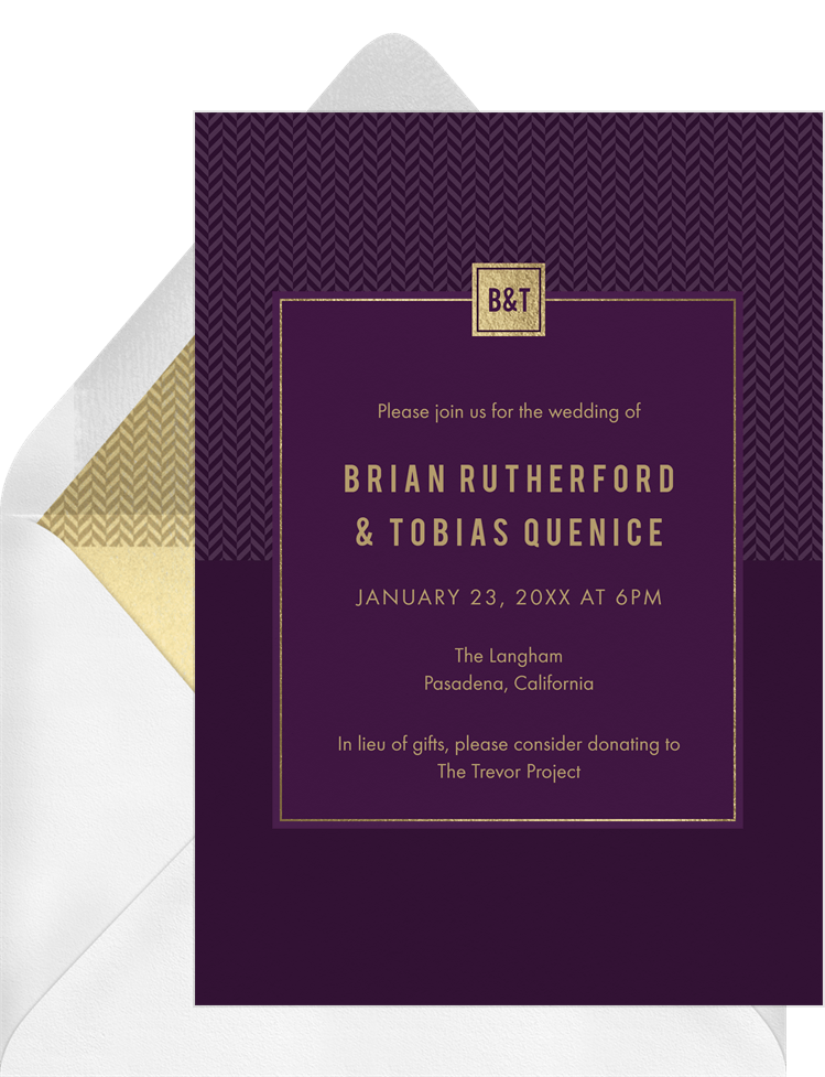 invitations herringbone monogram purple wedding Designs