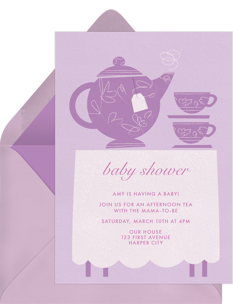 invitations high tea purple baby shower Designs