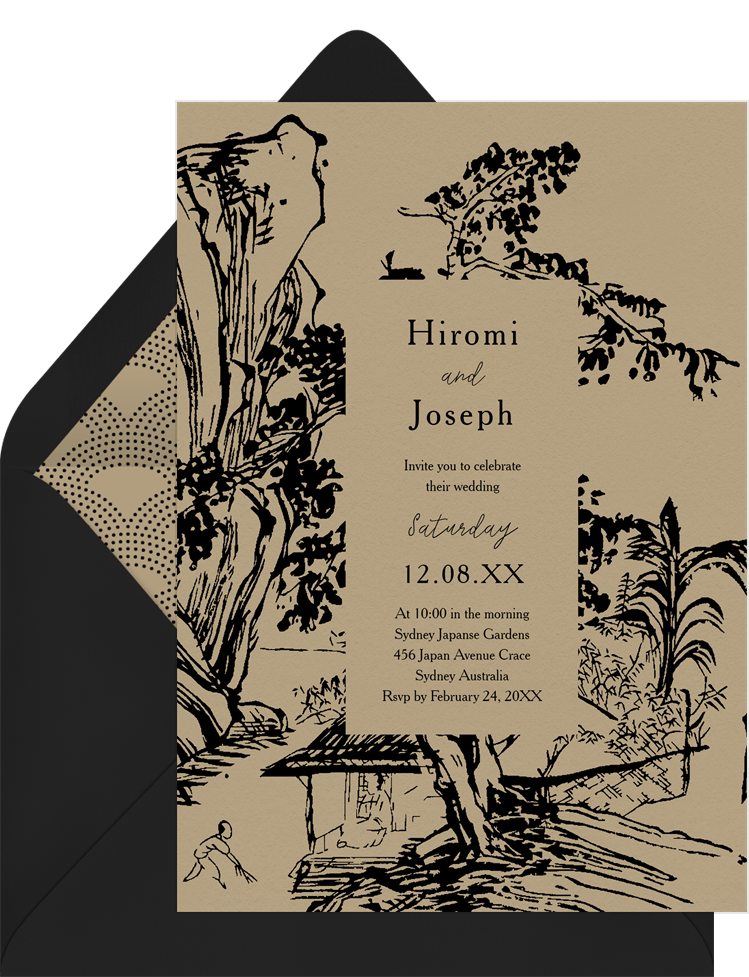 invitations ink art village brown wedding Designs
