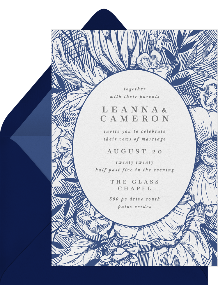 invitations inked florals blue wedding Designs