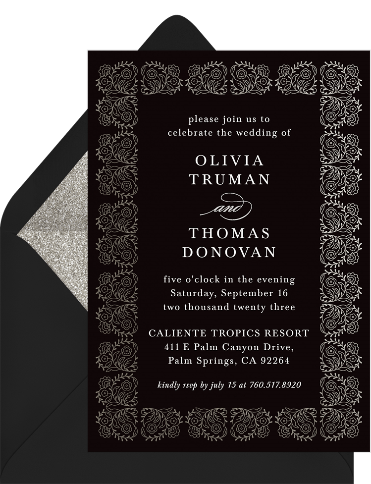 invitations intricate swirls black wedding Designs