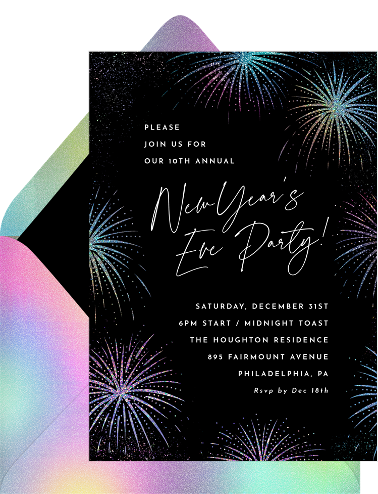invitations iridescent fireworks black new year's party Designs