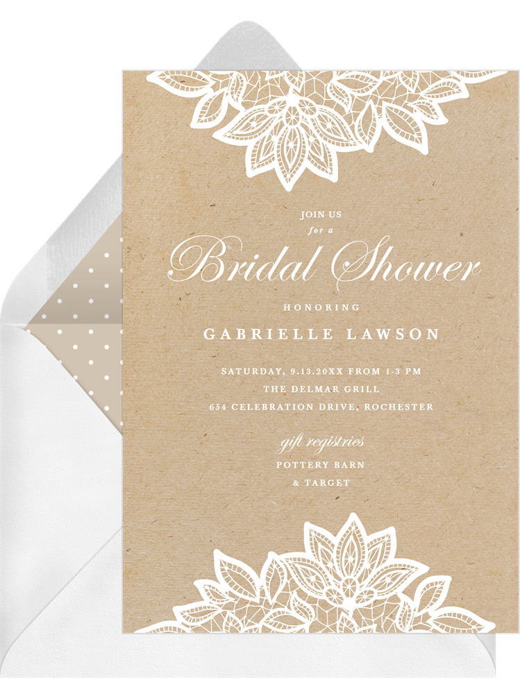 invitations lace details creme bridal shower Designs