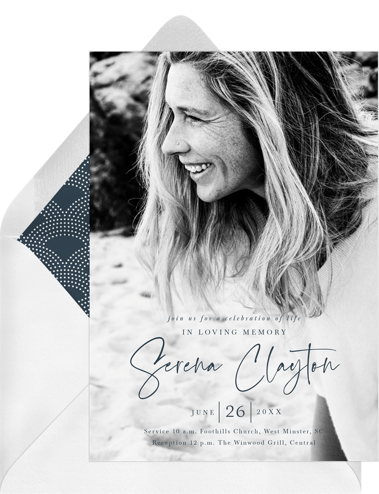 invitations large script blue memorial Designs