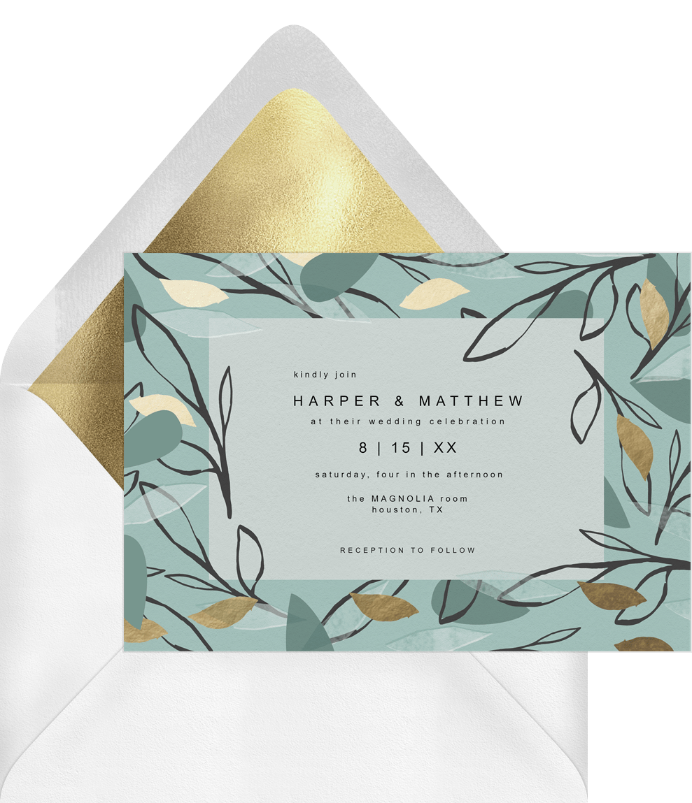 invitations layered leaves green wedding Designs