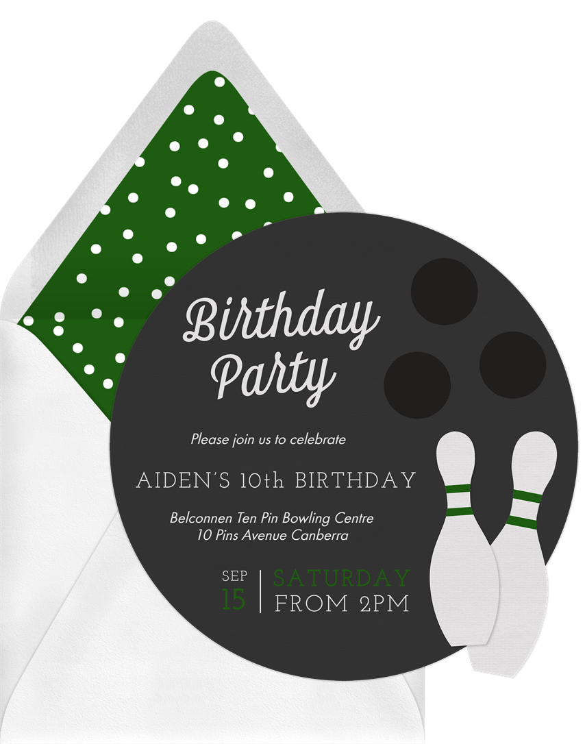 invitations let's bowl green kids birthday Designs
