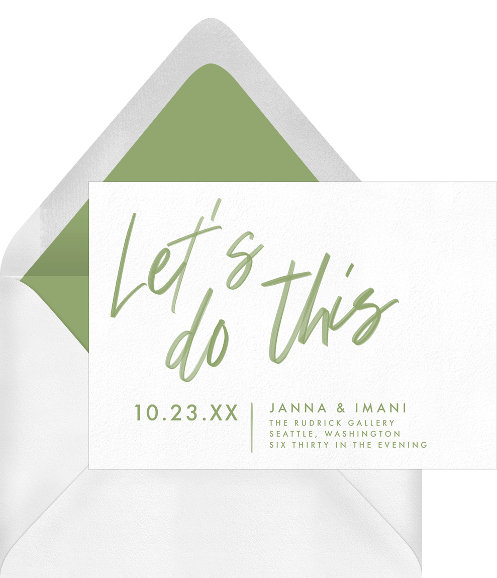 invitations let's do this green wedding Designs
