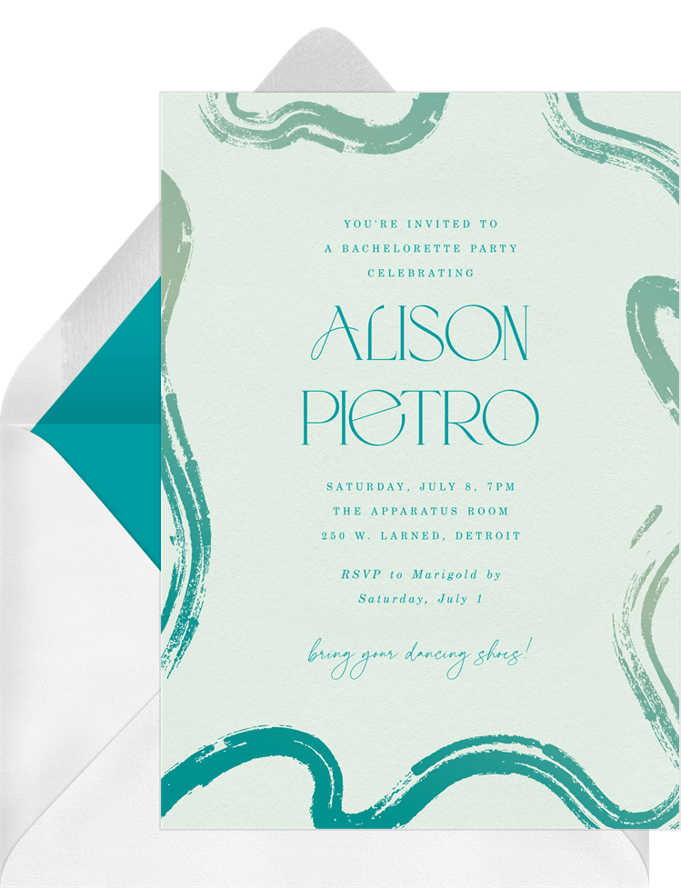 invitations lively brushstrokes blue bachelorette party Designs