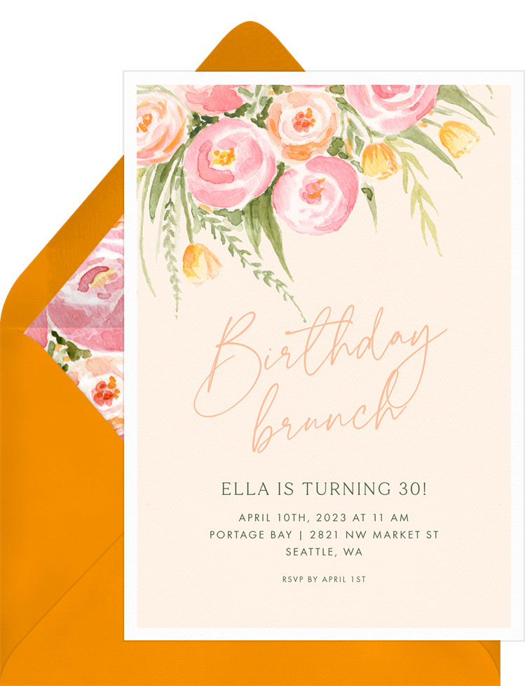 invitations lovely rose bouquet orange adult birthday Designs