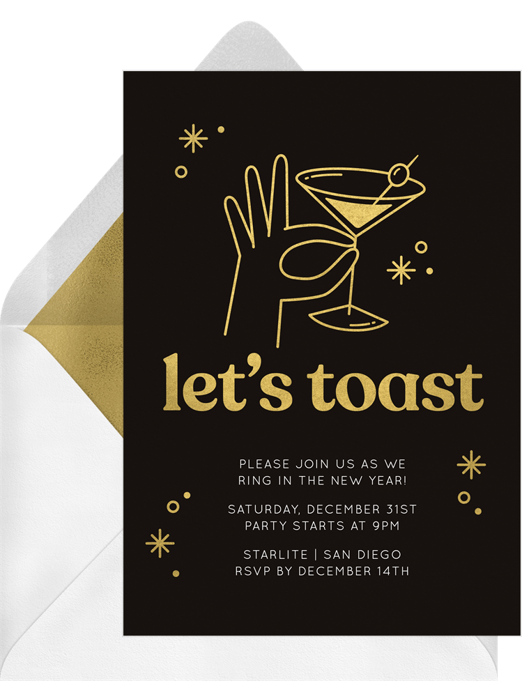 invitations martini toast black new year's party Designs