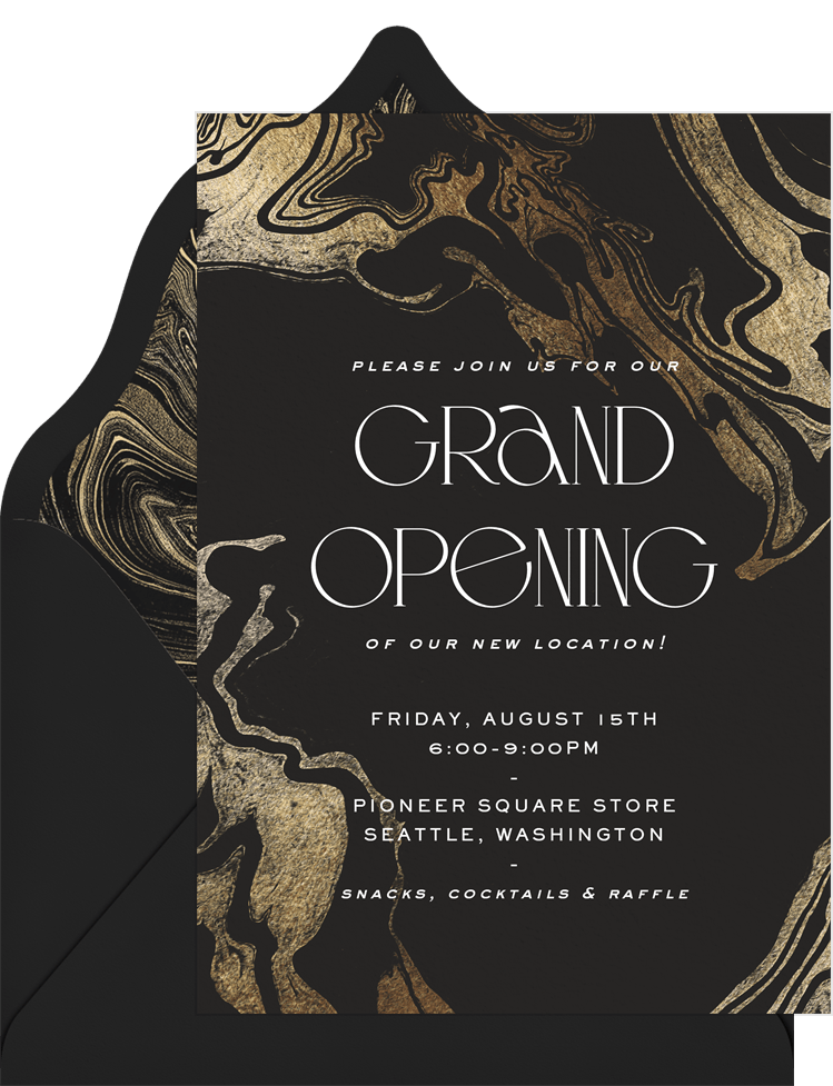 invitations metallic swirl black grand opening Designs