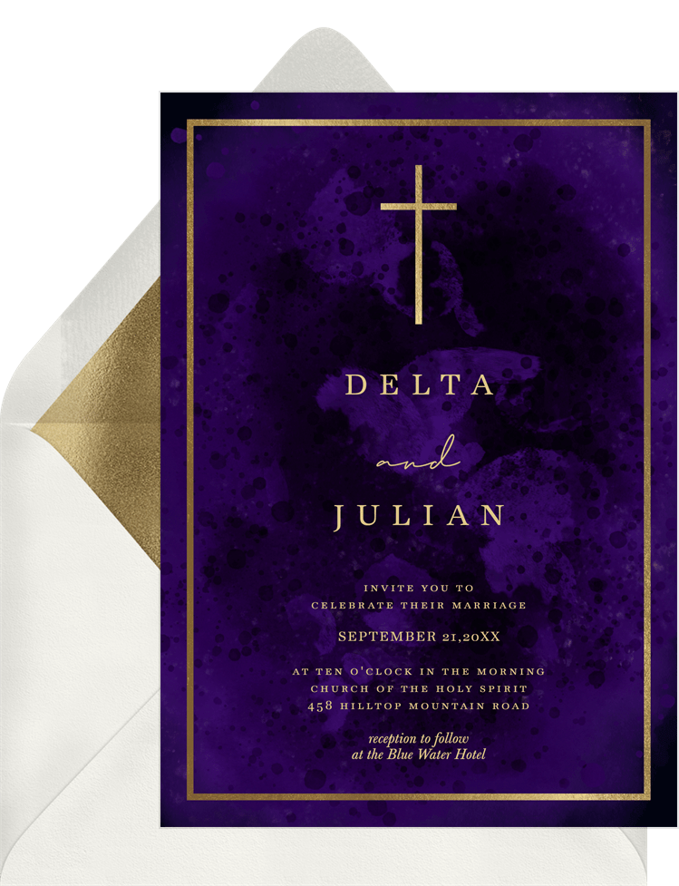 invitations modern cross purple wedding Designs