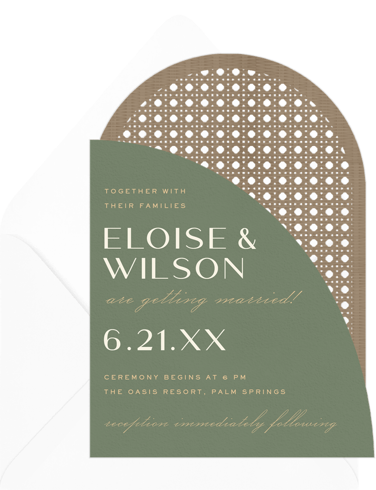 invitations modern rattan arch green wedding Designs