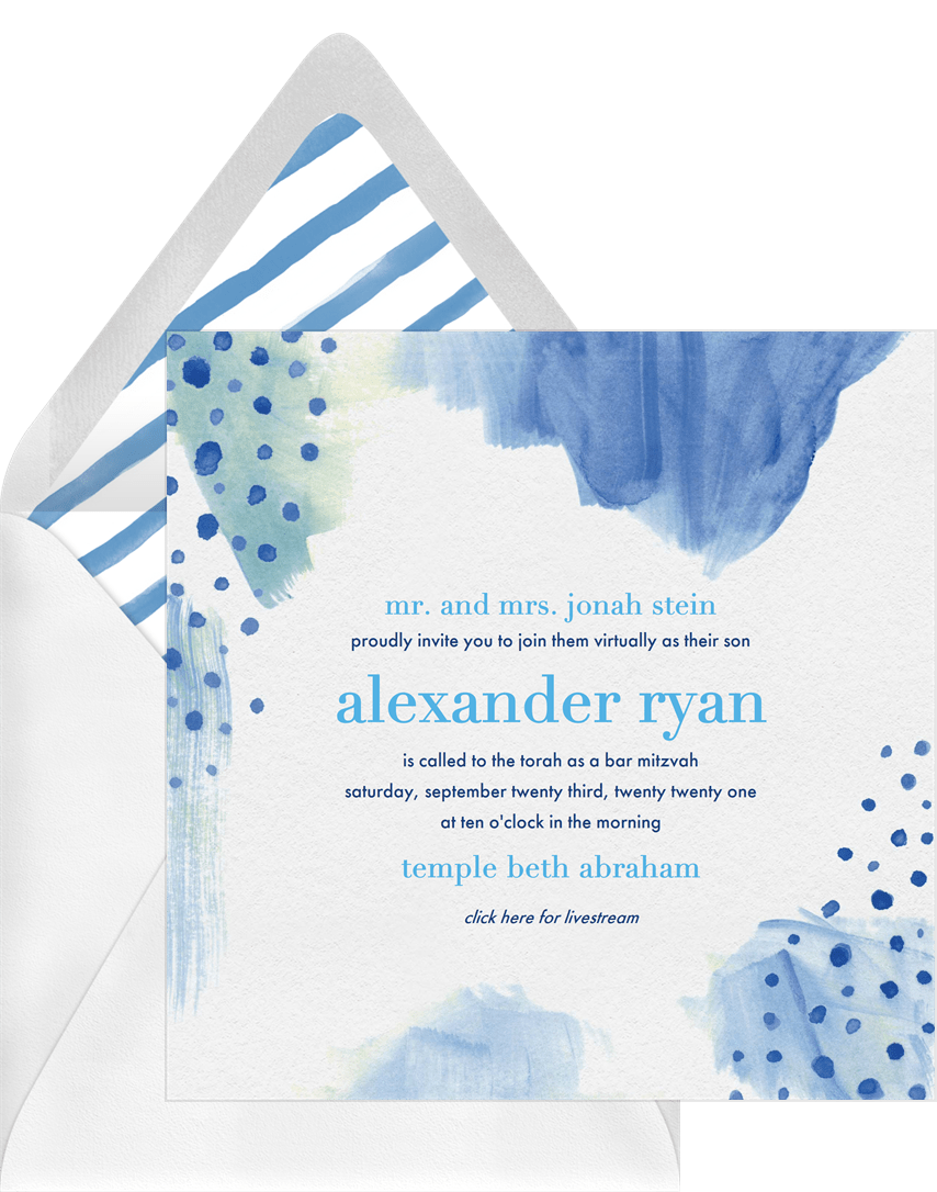 invitations monochromatic watercolor blue mitzvah Designs