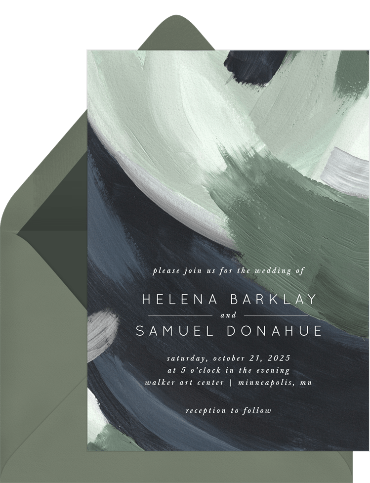 invitations moody brushstrokes green wedding Designs
