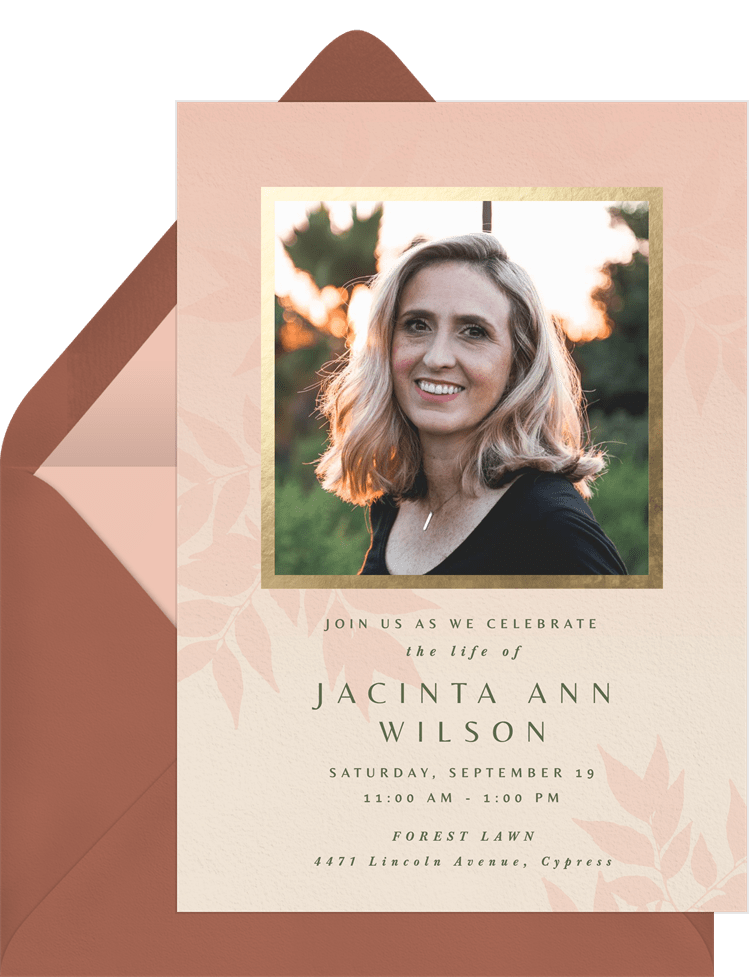 invitations natural leaves pink memorial Designs