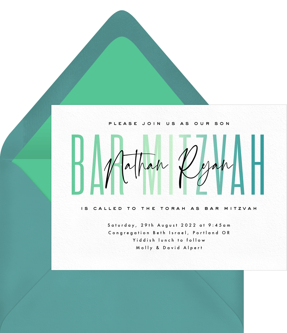 invitations ombre bar mitzvah green bar mitzvah Designs