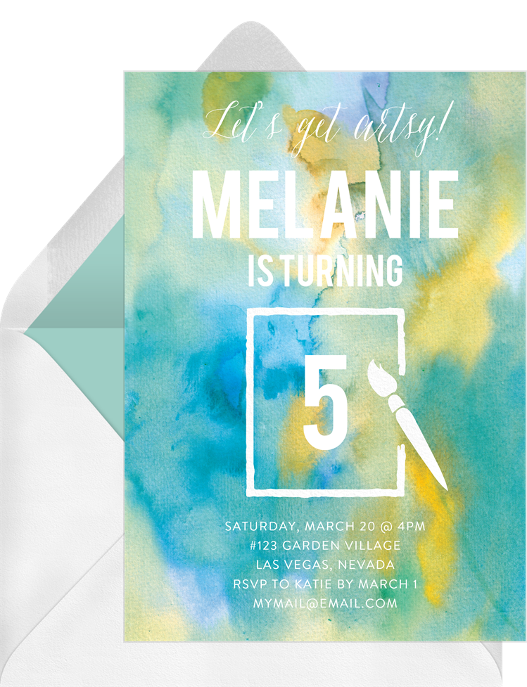 invitations paint brush blue kids birthday Designs
