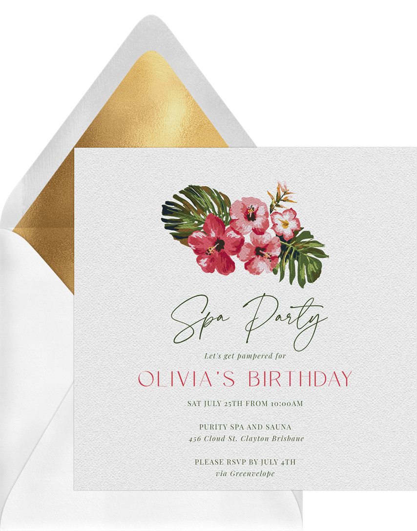 invitations painted hibiscus pink adult birthday Designs