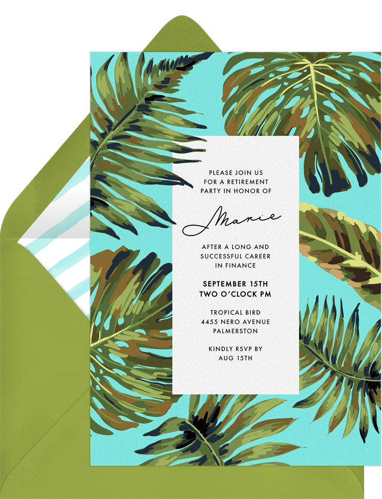 invitations palm leaves blue retirement Designs