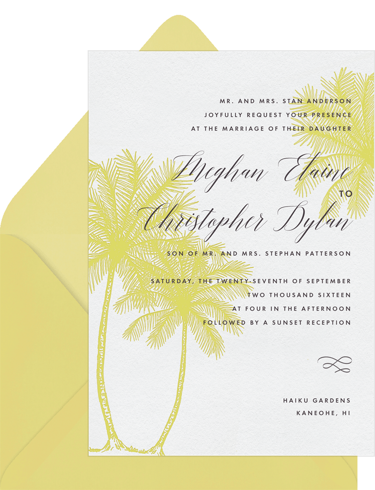invitations palm tree trio yellow wedding Designs