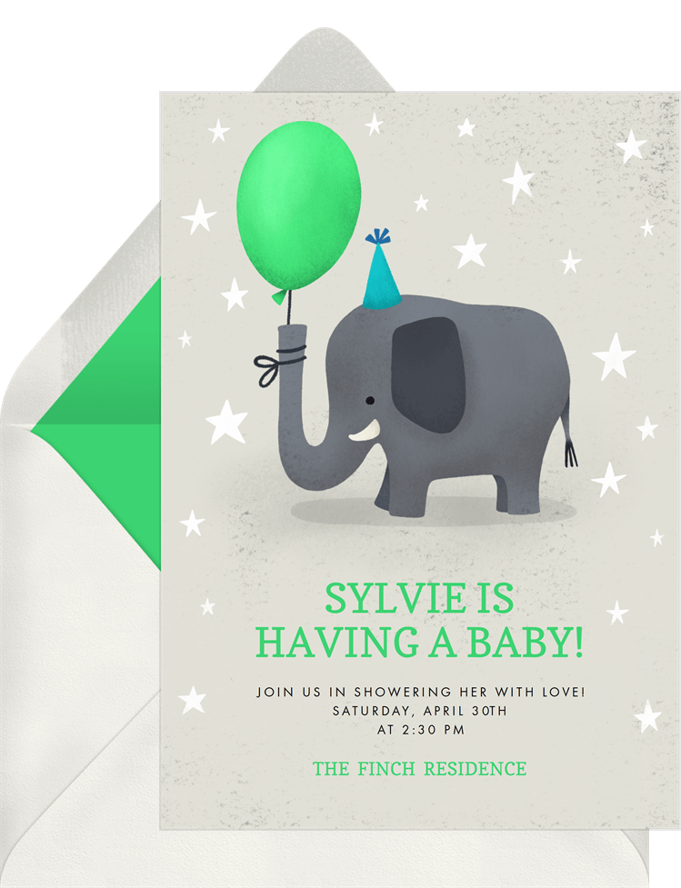 invitations party time elephant green baby shower Designs