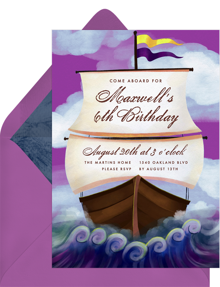 invitations pirate ship purple kids birthday Designs