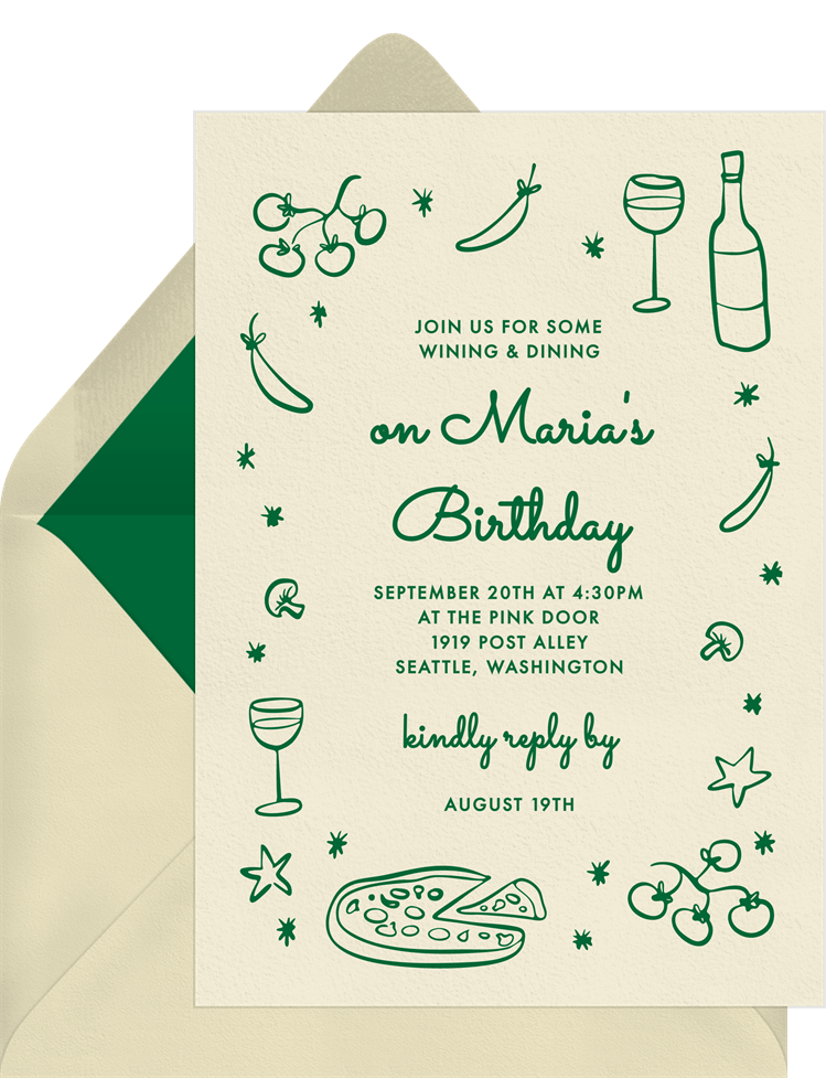 invitations pizza night whimsy green adult birthday Designs