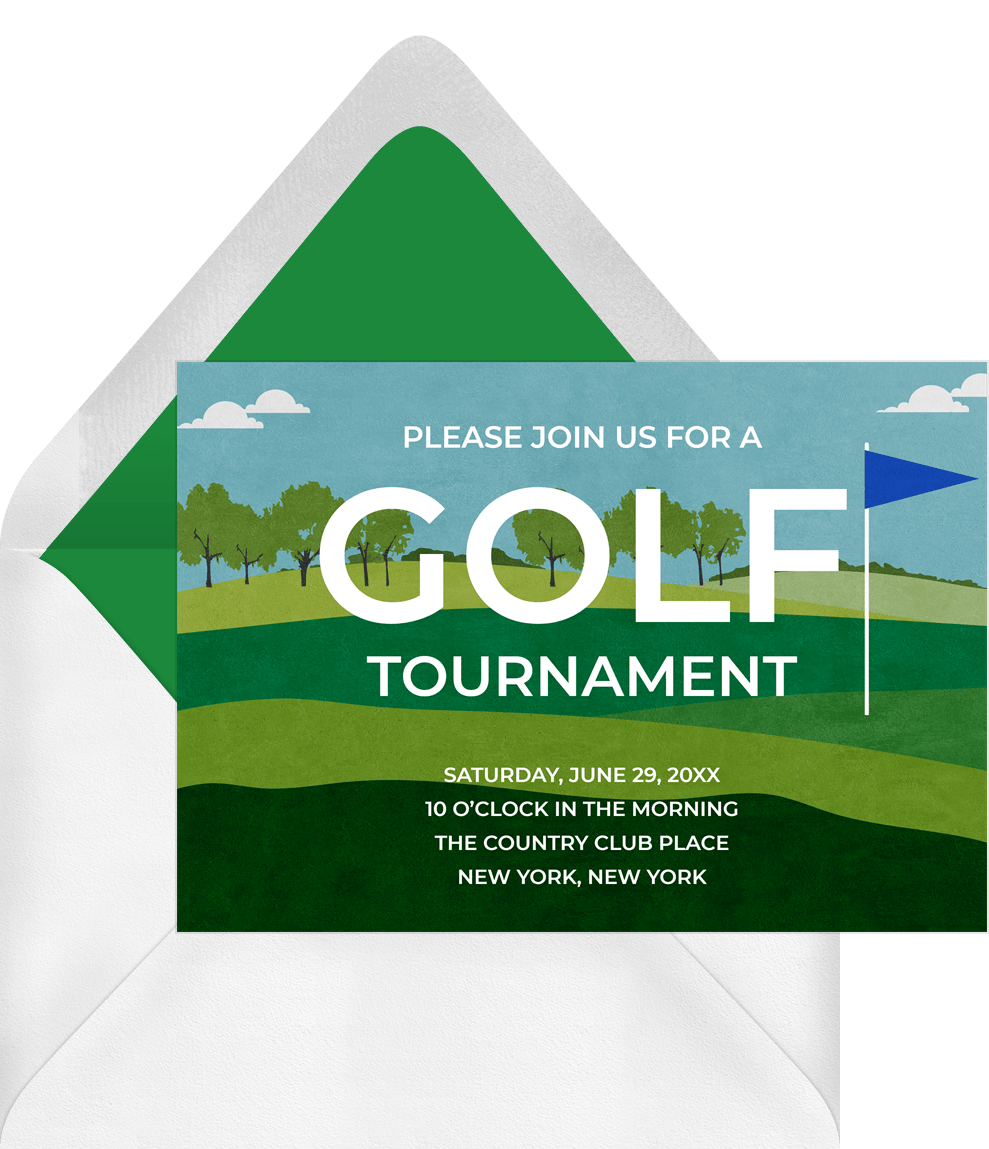 invitations putting green scene blue golf Designs