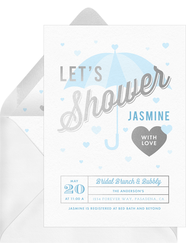 invitations raining hearts blue bridal shower Designs