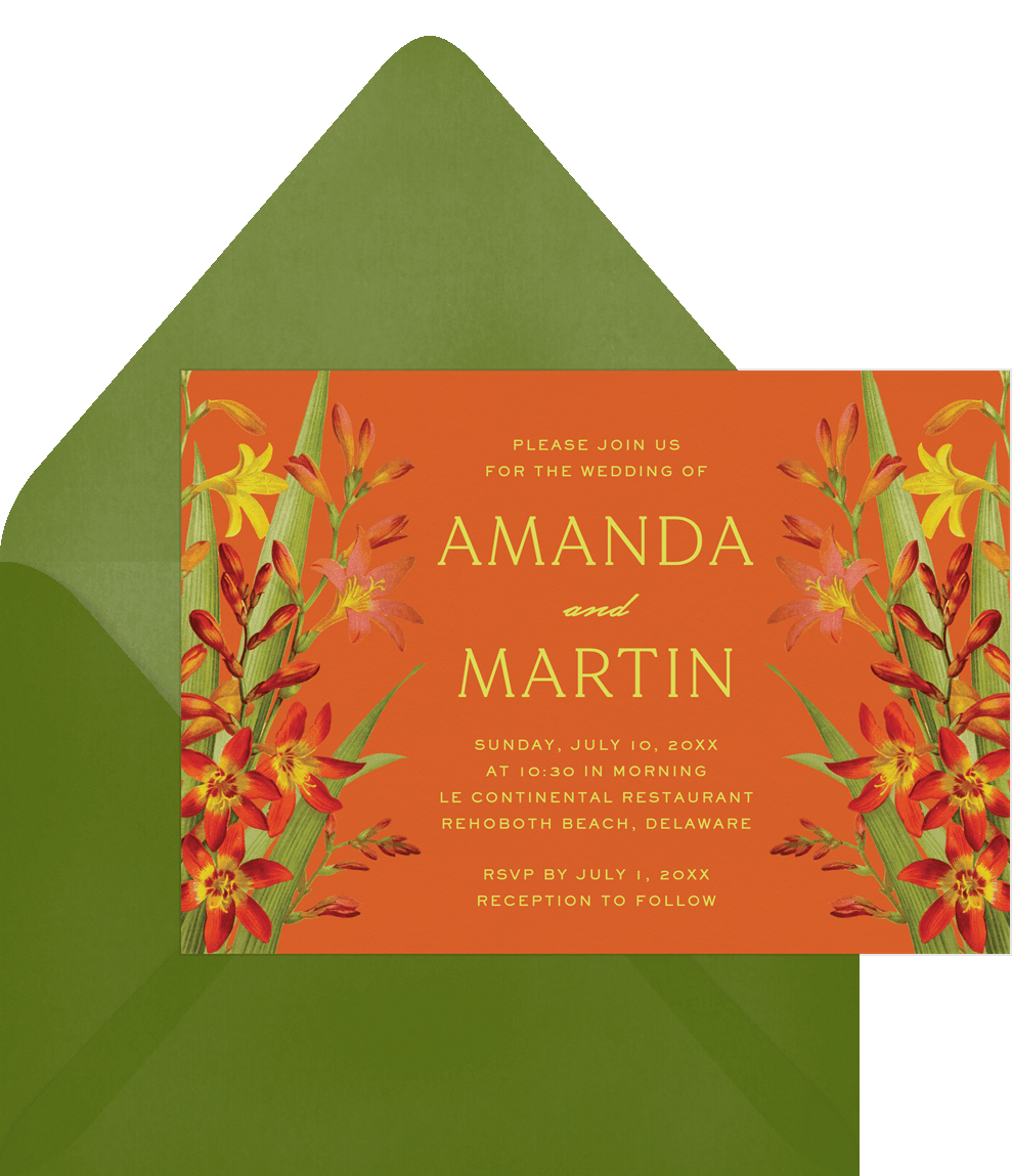 invitations red lillies orange wedding Designs