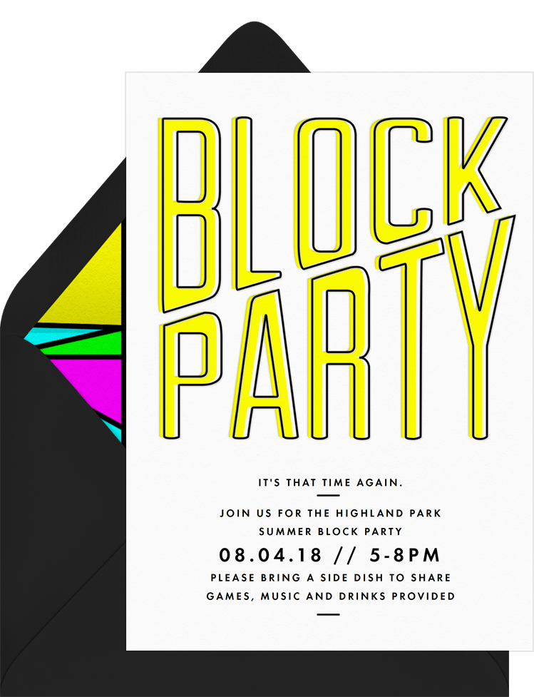invitations retro block party yellow entertaining Designs