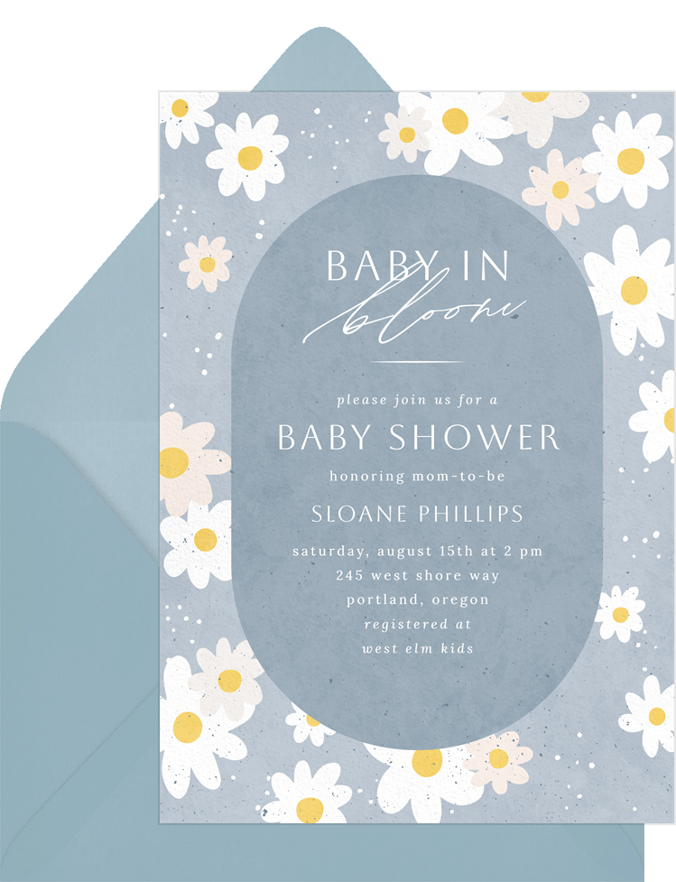 invitations retro daisies blue baby shower Designs