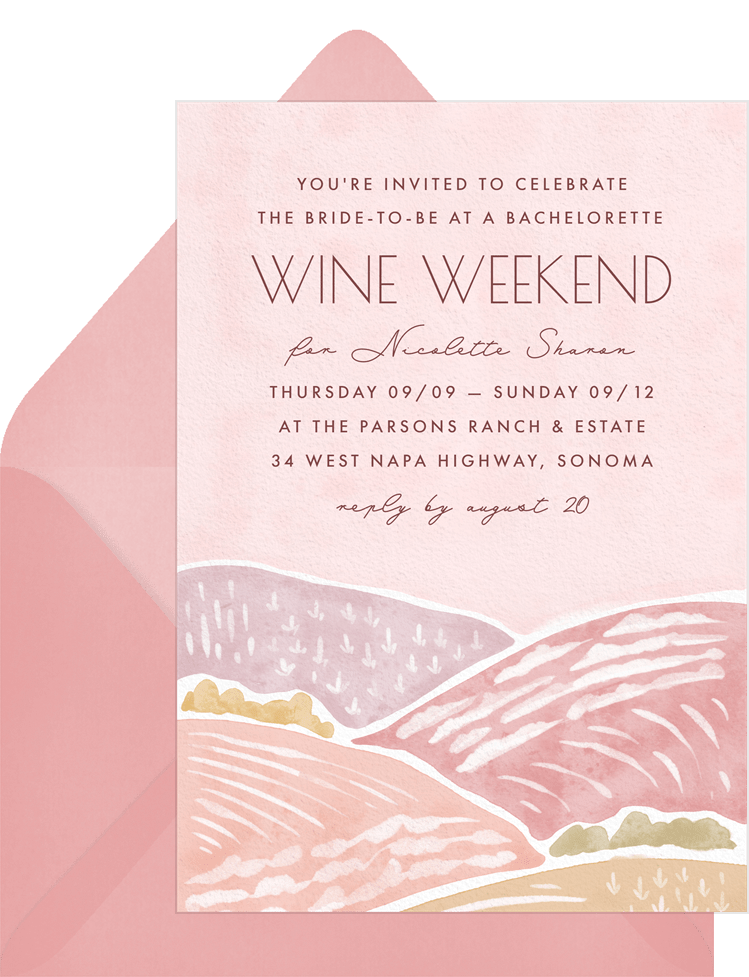 invitations rolling hills pink bachelorette party Designs