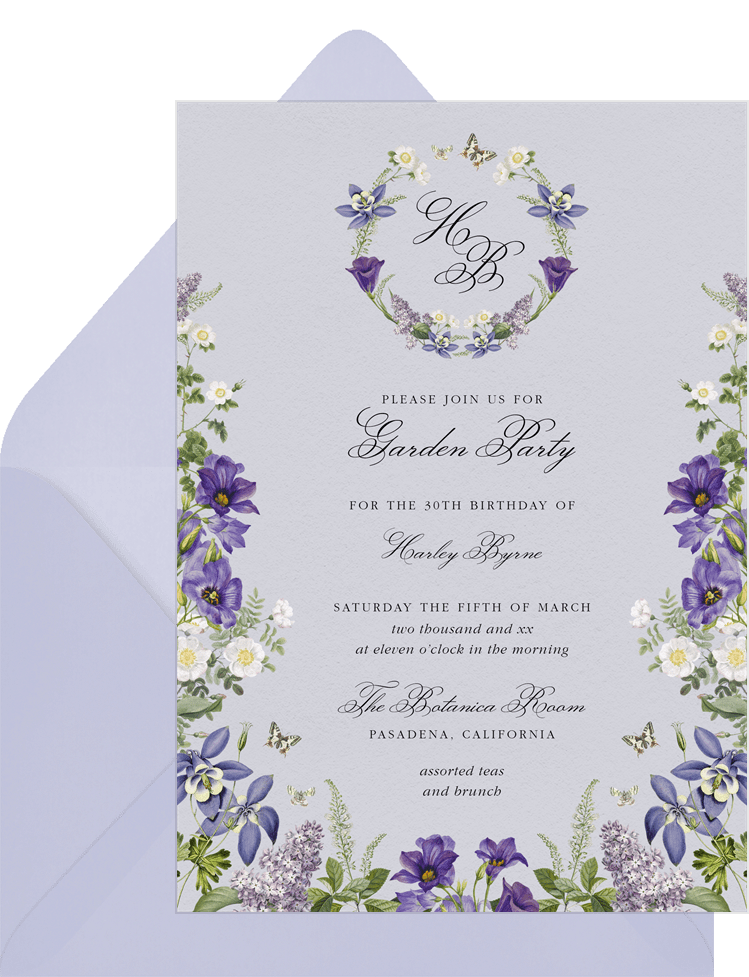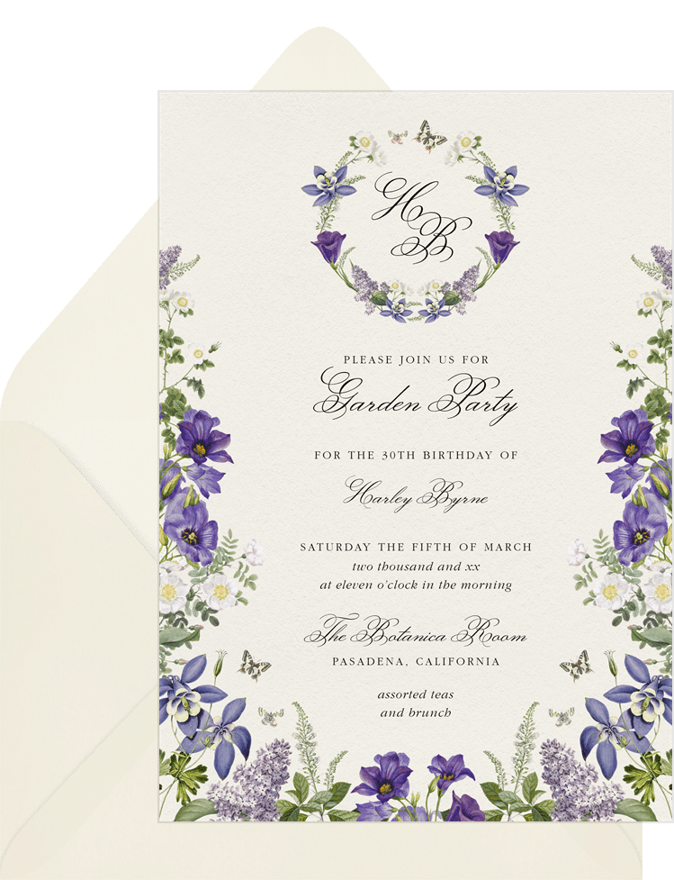 invitations romantic florals purple garden party Designs
