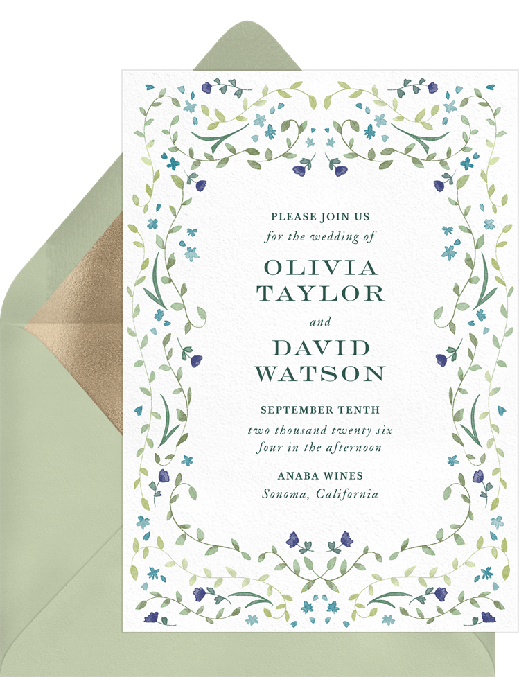 invitations romantic garland green wedding Designs